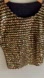 Fun gold sequin shirt sleeve top. It’s shorter, not quite cropped but shorter. It’s from a smoke and pet free home.