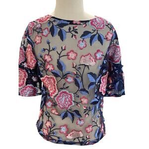 Size M Women’s Zara Floral Lace Flutter Sleeve Top Shirt Blouse