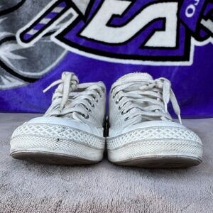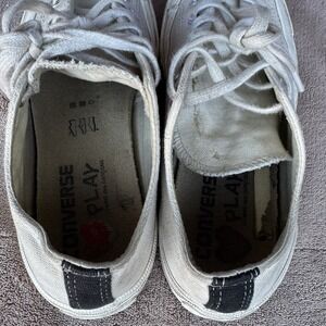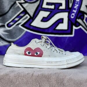 The Converse Comme des Garçons Play x Chuck 70 2015 Low Milk sneakers in size M5/W7 are a stylish and unique addition to any sneaker collection. Featuring a low top design, white colorway, and canvas upper material, these shoes showcase the iconic Converse Chuck 70 silhouette with a modern twist. Released in 2015 as part of a collaboration between Converse and Comme des Garçons, these sneakers are a must-have for fans of both brands looking for a blend of classic and contemporary style in their footwear.