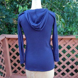 Size M/L 6-10 Cotton V-neck Ribbed Hooded Long Sleeve Tee by POUT Navy blue