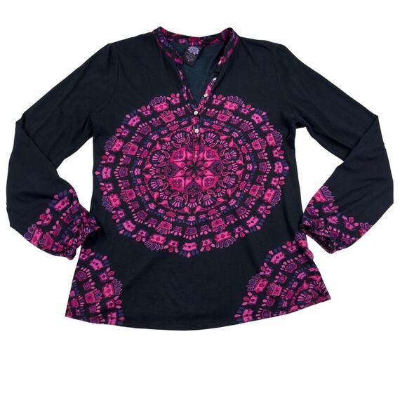 Lucky Brand Y2K Boho Hippie Floral Long Sleeve Henley Women's Size Medium.