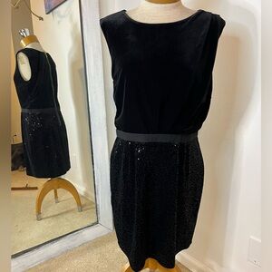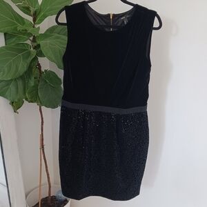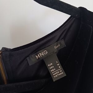 Mango or MNG dress. Excellent condition. Like new. The upper part of the dress is black velvet and the lower part is a sequined skirt. It is lined with a soft fabric underneath so the sequined part is not an issue on the skin. It has a gold zipper on the back from the top of the neck to the waist.