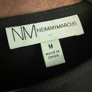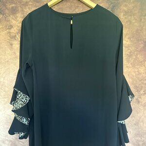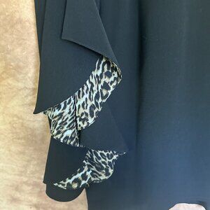 Size Medium Neiman Marcus Black Flowy Blouse with Leopard Bell Sleeves