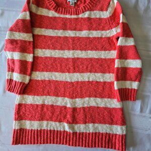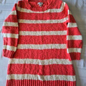 Size Medium Old Navy Coral & White Striped 3/4 Sleeve Sweater