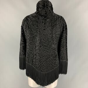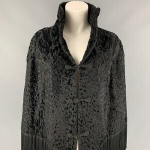 Size One Size Black Textured Ashtrakhan Fur Fringe Cape