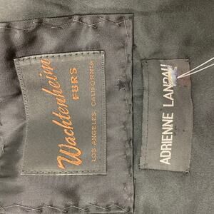 ADRIENNE LANDAU x WACHTENHEIM cape comes in a black textured ashtrackhan fur featuring a shawl collar, fringe trim, and toggle button closure.