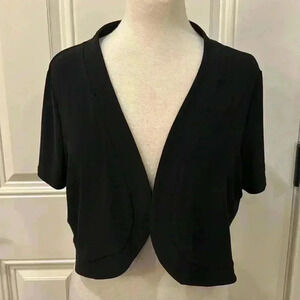 This beautiful maxi length sleeveless v-neck dress and matching shrug is machine washable. It is that perfect easy-care black dress that you will wear time and time again.