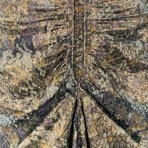 Size S Metallic Gold Grey Silk Blend Snake Print Ruched Fishtail Skirt