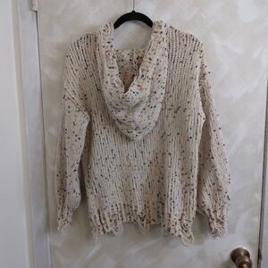 Size S POL Fun Fetti Sweater Distressed Edge Confetti Knit Hoodie Oversized
