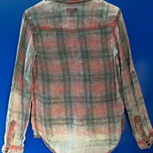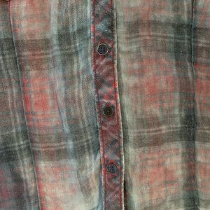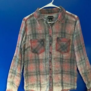 Wet Seal size S plaid button down shirt. The shirt is black, red and gray. Two pockets on the chest and has a collar. Made from 60% cotton and 40% polyester.