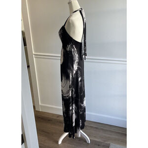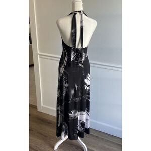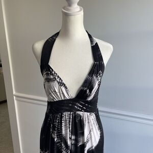 Size S/M Halter Dress Black White Slinky Stretch Empire Waist Goth Drama Minimal