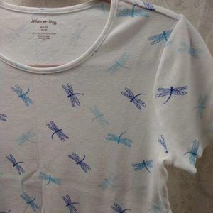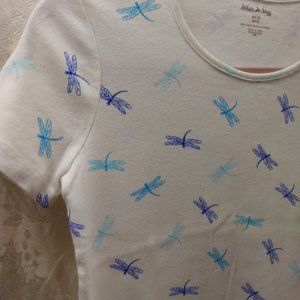 Size Small (4/6) ladies White Stag white/blue/purple dragonfly short sleeve top