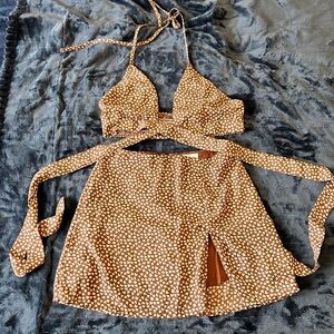 Two piece pink and brown set. Versatile lined top and lined shirt with slit.