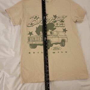 Size Small Ford Bronco graphic t-shirt. Vintage inspired design w/ a Ford Bronco & "Bronco '83 Built Wild" Soft Cotton Crewneck short sleeve. Armpit to Armpit 17". Neckline to bottom hem 25".