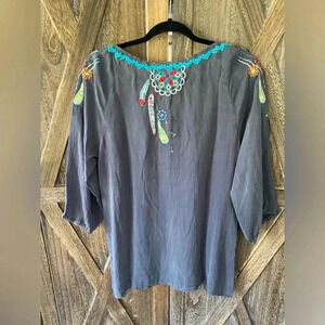 Size Small Johnny Was Dream Catcher Silky Embroidered Tunic 3/4 Sleeve
