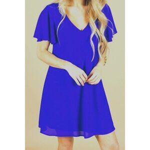 Size Small ROYAL BLUE FLUTTER SLEEVE SWING DRESS Summer Wedding Special Occasion
