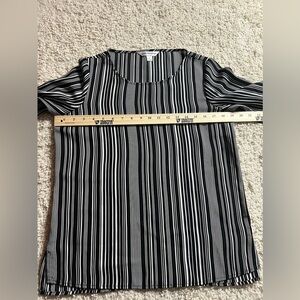 Elevate your wardrobe with this chic striped black and white top. Perfect for any occasion, it offers a stylish and comfortable fit.
