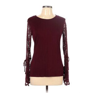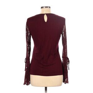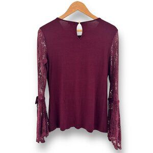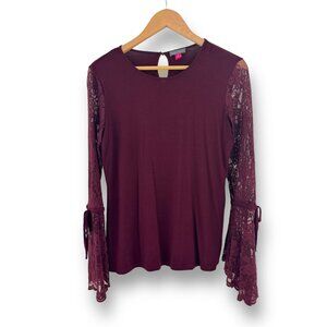 Size Small VINCE CAMUTO BURGUNDY WINE LACE BELL SLEEVE KNIT TOP Shirt Blouse