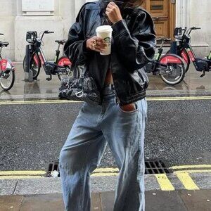High collar jacket. Long sleeves finished in cuffs with shoulder tabs. Side pockets. Contrasting inner lining. Front zip closure and snap-button placket.