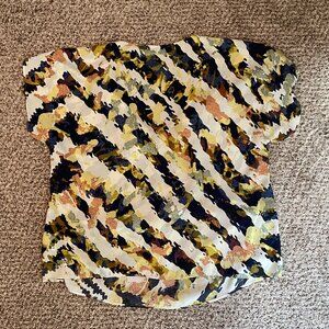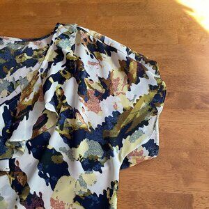 Size XL Daisy Fuentes blue yellow white blouse with ruffles