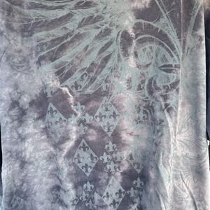 Elevate your casual wardrobe with this stylish Hybrid Apparel T-Shirt. Featuring a gray tie-dyed graphic print with a fleur de lis theme, this crew neck short sleeve shirt is perfect for men who want to make a statement. Made of cotton, this regular fit shirt is both comfortable and durable, and can be easily cared for with machine washing.