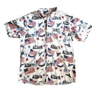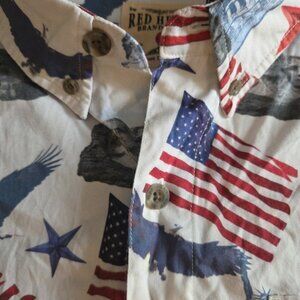Size XL Red Head Patriotic Flag Eagle Shirt Mt Rushmore S Dakota Shrt Slv Cotton