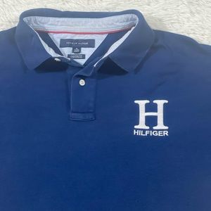 Size XL Tommy Hilfiger Custom Fit Polo Shirt Oversized Logo Navy Blue