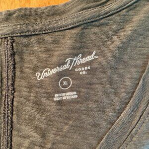 Size XL Universal Thread short sleeve, army green midi T-shirt dress. V-neck, tag free and super comfy, soft material! There is one snag on the back of the dress [see photos for details].