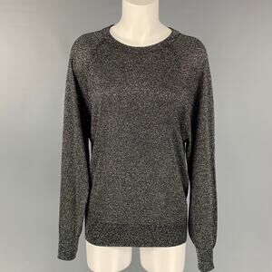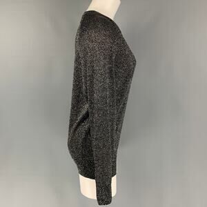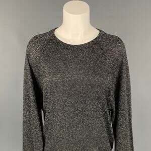 Size XS Black & Silver Metallic Acetate Blend Crew-Neck Pullover