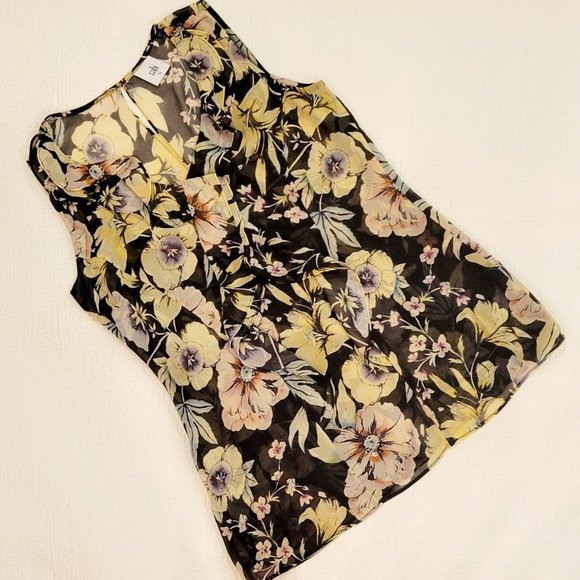 Size XS: CAbi Osaka Nights Floral Ruffle Blouse Style 3265 Excellent Used Condition