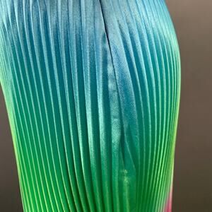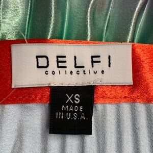 DELFI COLLECTIVE skirt in a multicolor polyester featuring a pleated style, rainbow ombre design, and side zipper closure.