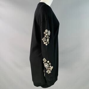 Size XXS Black Cotton Blend Crystal Embellishment Sweatshirt Dress