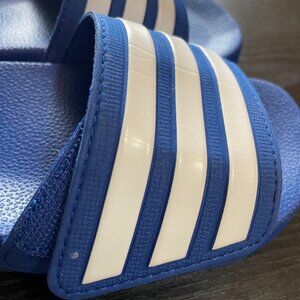 Treat their feet after they hop out of the pool with these kids' comfortable slides. Quick-drying and ultra-soft, they cradle their feet with lightweight cushioning. Big and bold adidas branding adds a classic look.