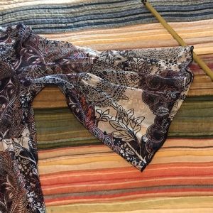 Lavender sky sheer top with bell 3/4 sleeves. Beautiful medallion print