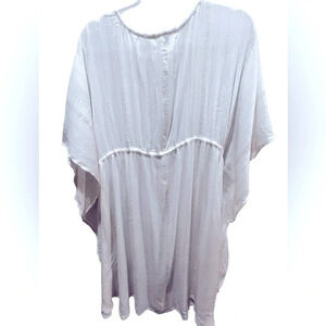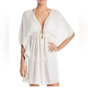 Size medium Bleu Rod Beattie white swim coverup with gold shimmer stripes