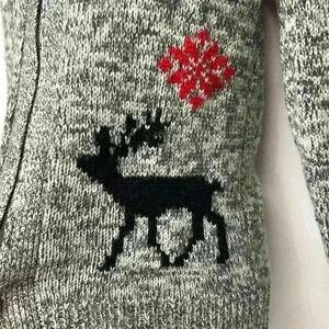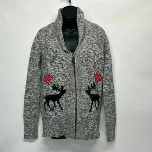 In very good condition 50%, more 50% acrylic zip up hoodie with deer design on the front heather gray