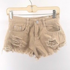 distressed denim tan cute unbranded shorts size small NO flaws perfect condition has button and zipper frail