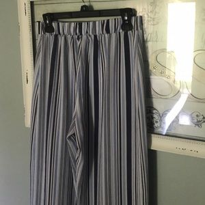 Blue and white stripe, wide bottom, pant. Comes to ankles.