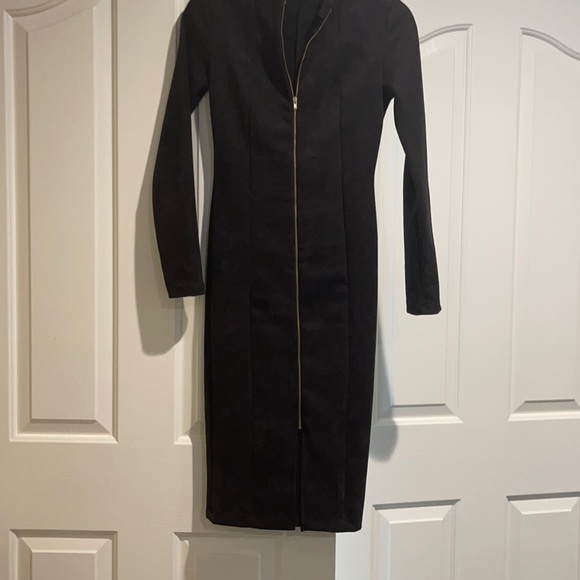 Velvet black knee length dress that I wore once. Zipper can be zipped lower or higher