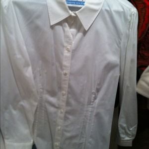 White long sleeved button down blouse from Banana Republic worn once and dry cleaned. Zero spots or stains! Let me know if you are interested! Thanks