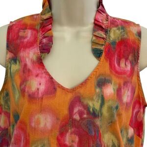 Size 0 Sleeveless Blouse J. Crew 100% Cotton Watercolor Orange Pink Red Floral Roses Summer Fall Professional Office Workwear