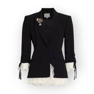 Cinq à Sept Roxie Blazer ~ Crepe Silk Lace Jeweled Brooches