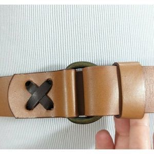 Size 38 Vintage Tan Aniline Steer Hide Leather Belt Hippie 1970s steerhide NOS