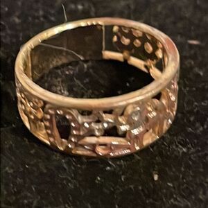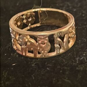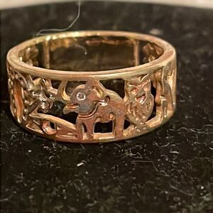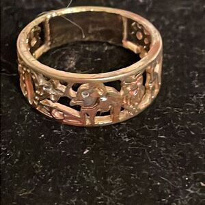 Size 6.25 18k open scrollwork gold plated Lucky charm elephant #7 owl horse ring