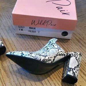 Size 7 pointed toe slip on mules. 3-3/4" block heel. Very modern and comfortable. Comes with original box. Wild Pair.