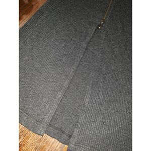 Good Used Condition Women's Size 8 Joseph Ribkoff Creations Sport Grey Front Zip Ribbed Knit Maxi Skirt with Front Slit and Some Stretch