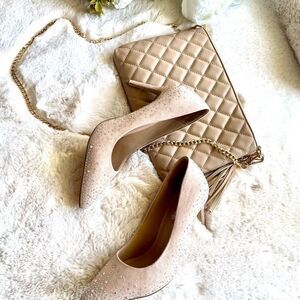 Gorgeous formal suede pumps with iridescent rhinestone embellishment. Unworn. Size 9 price is already low and firm.