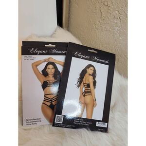 Black Opaque Strappy Bandeau Top and Matching Thong Panty