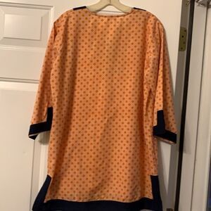 Size medium orange and navy 100% cotton top with three-quarter sleeves