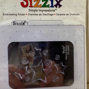 Set of three Sizzix label dies. Includes bright green and pink colors. Ideal for crafting.